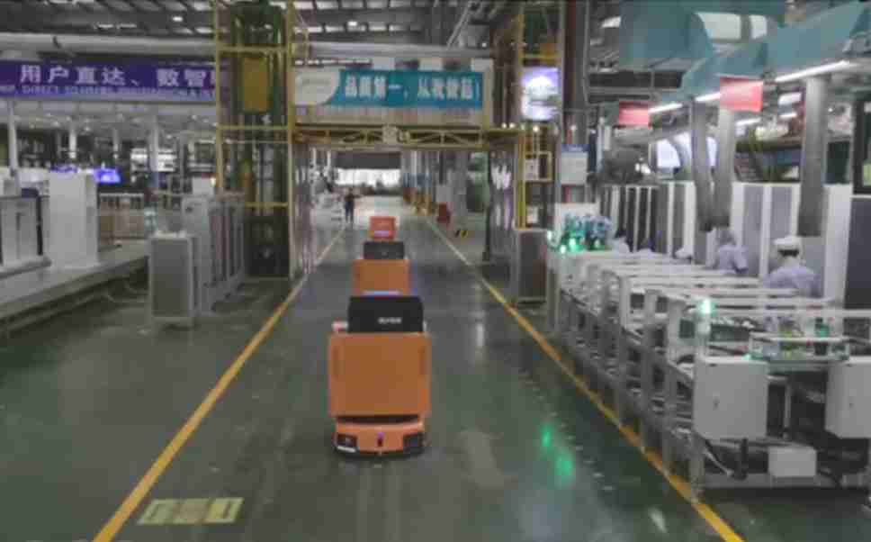 为车载冰箱物流配送打造的智能解决方案,,,包含产中物流通过潜伏举升AMR搬运至线边,,产后成品物流智能仓储,,,流程包含产中物流智能齐套入库,,线边安灯叫料AMR智能配送至线边,,,成品入库、、出库,,通过无人堆高车机器人,,,智能仓储管理替代人工作业管理,,,实现更高存储、、、、更高效率、、、更具柔性化的解决方案。。。。